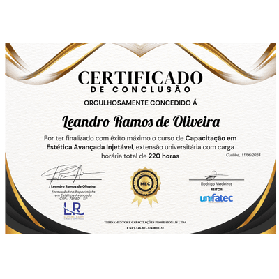 Após concluir todas as aulas do curso você receberá um certificado com carga horária de 220h, válido em todo o Brasil