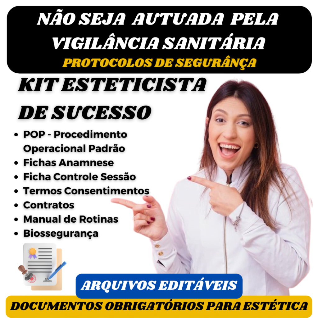 Ao comprar esse produto digital, irá receber + de 70 arquivos editáveis para usar em + de 25 procedimentos Estéticos - Kit Esteticista de Sucesso : POP + Termos Consentimentos + Contratos + Anamnese + Manual de Rotinas + Recomendações + Biossegurança + Ficha de Controle de Sessão. Tenha com facilidade todos os documentos necessários para atender seu cliente e também atender uma visita da vigilância sanitária . Basta editar o arquivo de seu interesse com os dados do paciente e imprimir, os arquivos obrigatórios exigidos pela Vigilância Sanitária deixar impresso e guardado em uma pasta. Tudo muito fácil e Rápido de fazer e evitando problemas futuros para seu espaço de estética