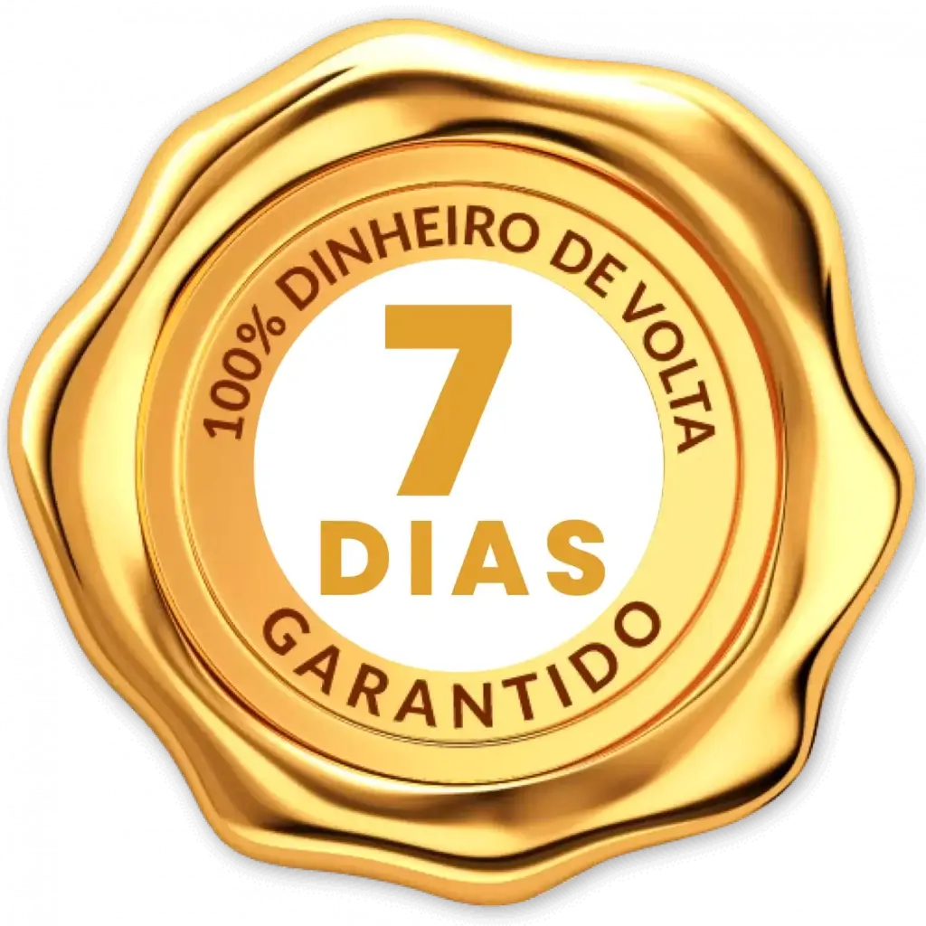 Seu dinheiro de volta sem perguntas até 7 dias após a compra.